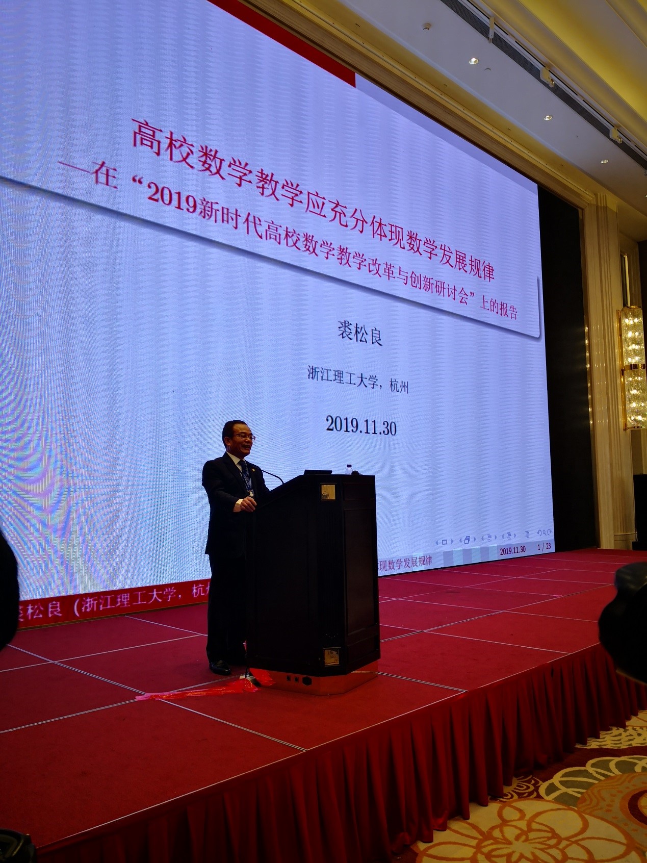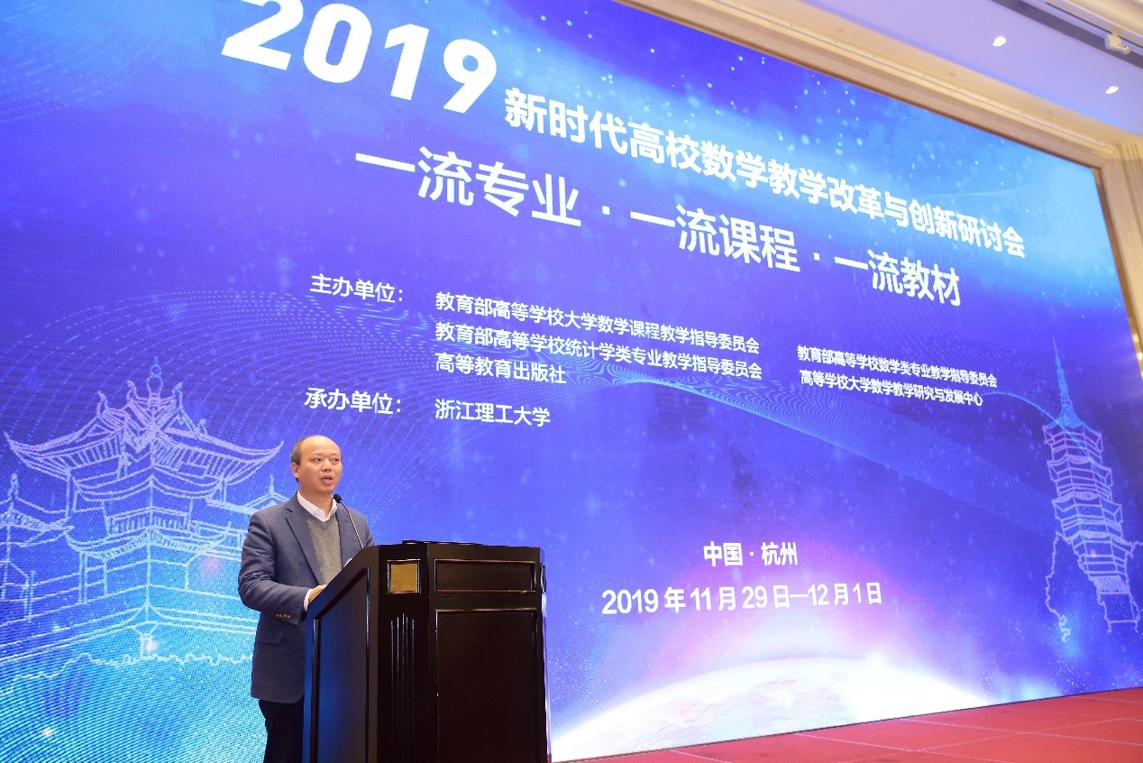 2019年11月29日至12月1日,“2019新时代高校数学教学改革与创新研讨会”在杭州召开,本次会议由教育部高等学校大学数学课程教学指导委员会、教育部高等学校数学类专业教学指导委员会、教育部高等学校统计学类专业教学指导委员会、高等学校大学数学教学研究与发展中心和高等教育出版社共同主办,由我校承办。