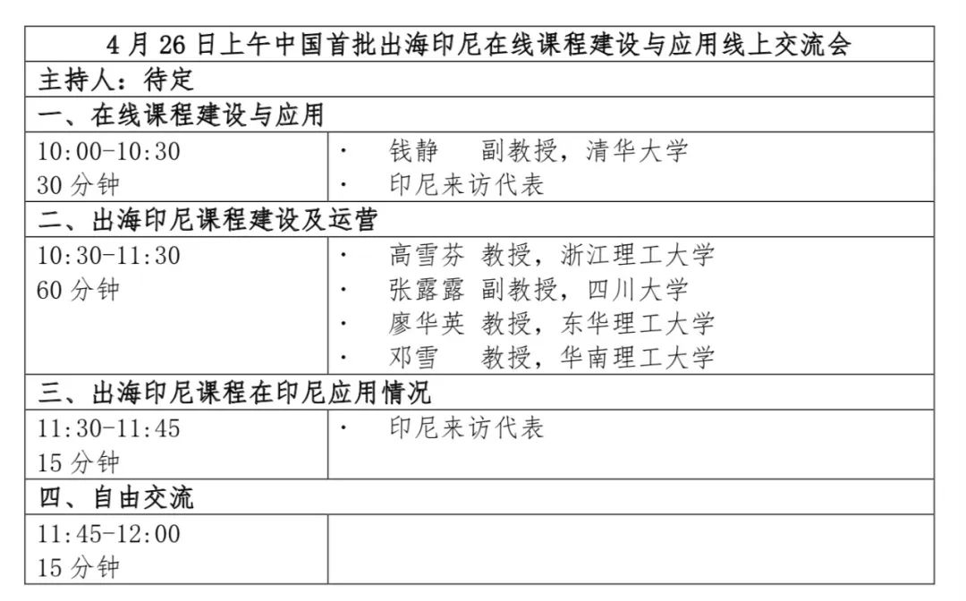 “微积分应用课程”作为这108门课程之一,在印尼国家在线课程平台运行已一年。2023年4月,印度尼西亚网络教育学院来访学堂在线,就在线课程建设与应用及第二批“出海”印尼课程征集工作进行深入探讨。4月26日,“中国首批出海印尼在线课程建设与应用线上交流会”在学堂在线召开,印尼代表、中国教师代表及学堂在线工作人员出席会议。