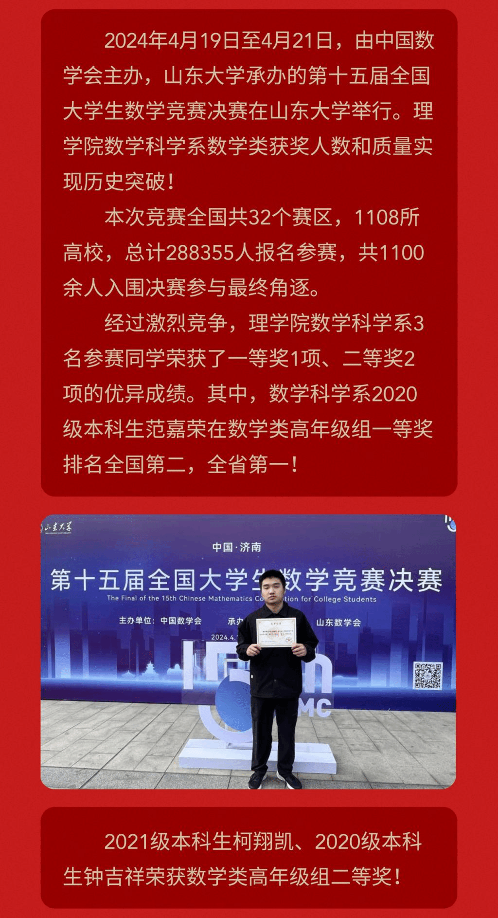 喜报|理院学子喜获全国大学生数学竞赛决赛数学类高年级组一等奖!