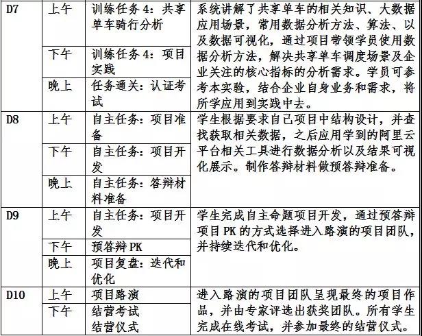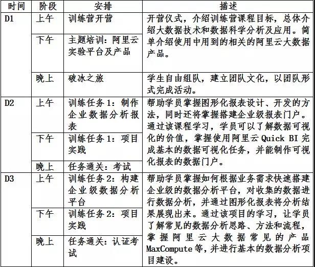 阿里云数据工程训练营,通过2周集中训练,重点训练前沿科技行业的数据应用能力,通过学习数据工程实战项目,理解企业环境下真实的工程项目流程,用所学理论知识解决实际问题。重点培养学生综合工程能力,包括项目管理能力,解决问题的逻辑思考能力,专业技术应用能力,编码能力及算法应用能力等。