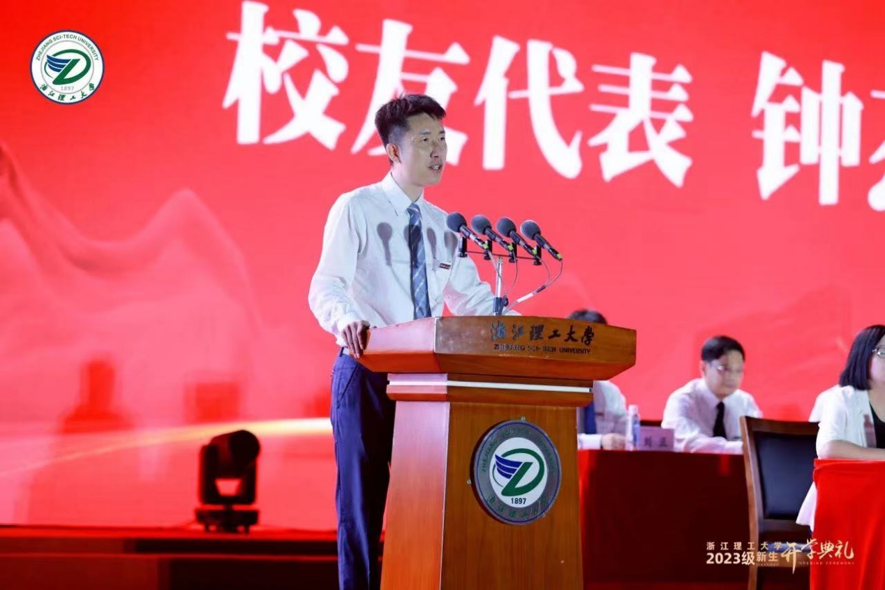 我是钟杰,2000级信息与计算科学专业校友。受母校邀请作为校友代表发言,倍感荣幸。在这里我衷心祝贺每一位2023级新生从此刻上了浙理的烙印,一生践行“求知求实、创新创业”。