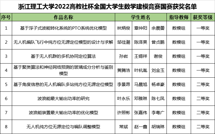 近日,2022高教社杯全国大学生数学建模竞赛成绩公布,我校学子斩获全国一等奖4项,全国二等奖4项,成绩位列全省高校第一,取得历史最好成绩。