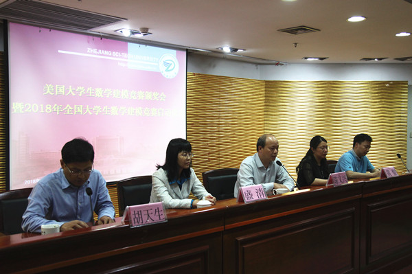 理学院院长陈爱喜宣读了2018年美国大学生数学建模竞赛获奖名单,与会领导为特等奖、一等奖、二等奖等获奖学生颁奖。